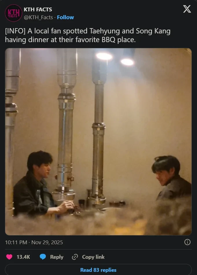 Ngay lập tức, các trang mạng tràn ngập bình luận hài hước. Một người đùa rằng: "Ở Hàn Quốc mà đi ăn chung là hẹn hò rồi đấy", trong khi người khác lại gọi vui đây là "buổi date của đôi bạn trai". Trên X (Twitter), cư dân mạng còn đào lại đoạn video cũ ghi lại khoảnh khắc Song Kang nhìn V bằng ánh mắt được cho là đầy trìu mến, kèm theo những dòng trêu chọc như: "Ánh mắt này chỉ có một ý nghĩa duy nhất".