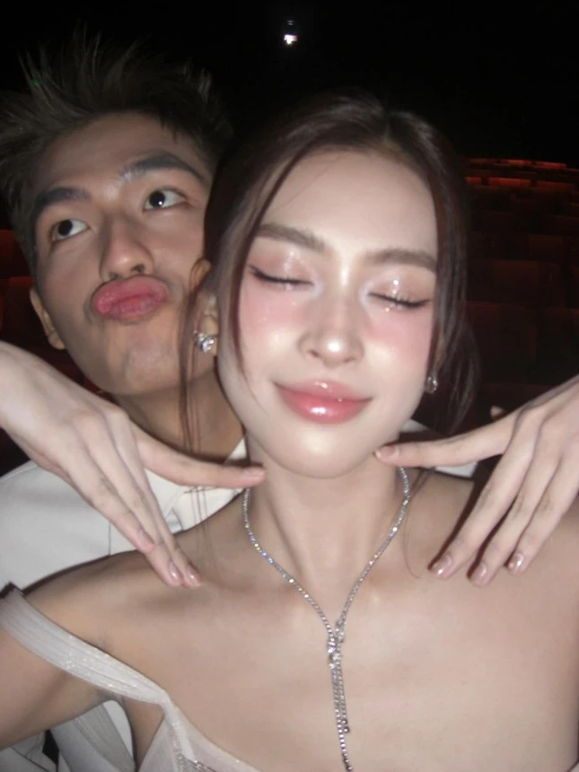 The connection between Van Mai Huong, Quoc Anh, and Tieu Vy has garnered even more attention, especially after their collaborations on several projects. During the 2026 Lunar New Year, Van Mai Huong and Quoc Anh caused a sensation on the big screen when they starred together in Tran Thanh's film "Tho Oi!" (Oh, Little Rabbit!). The film, a romantic thriller, received positive reviews from audiences thanks to the natural chemistry between the two lead actors. Notably, this also marked a significant turning point for Van Mai Huong as she ventured into acting, earning praise for her progress.