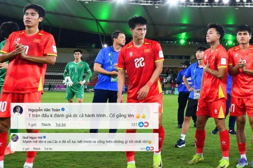 Tiền đạo Nguyễn Văn Toàn cũng gửi lời chia buồn đến toàn đội U23: "Một trận đấu không thể đánh giá cả hành trình, cố gắng lên." Trung vệ Đình Trọng cũng gửi lời động viên: "1 trận đấu không thể đánh giá được một hành trình tuyệt vời em ơi."