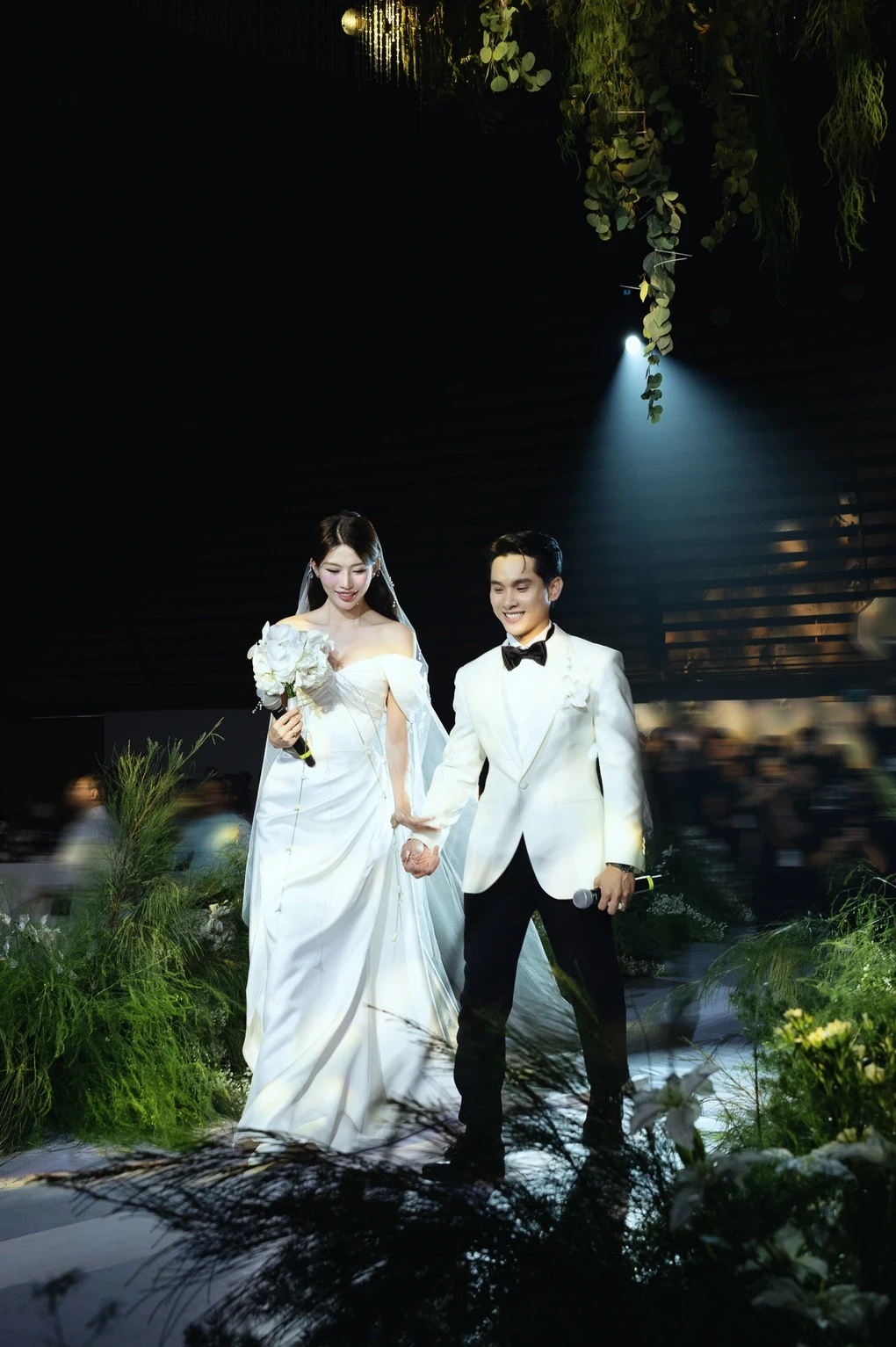 Many viewers even compared Quynh Chau's wedding to a "long-legged night", when a series of beauty queens, runners-up and famous models walked together on the red carpet. The bride Quynh Chau also received a "shower" of compliments thanks to her sweet beauty, radiant aura and sophisticated wedding dress that helped to show off her slim, seductive figure.