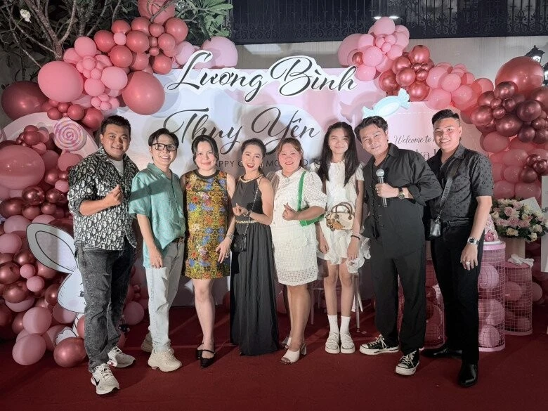 The full month party of baby Luong Binh Thuy Yen on the evening of November 28 was attended by many close artists and family friends. Linh Ty, Bich Tram and their daughter appeared to congratulate, which was a surprise because the two sides had previously exchanged words. The couple happily chatted with Phuong Le and Vu Luan.