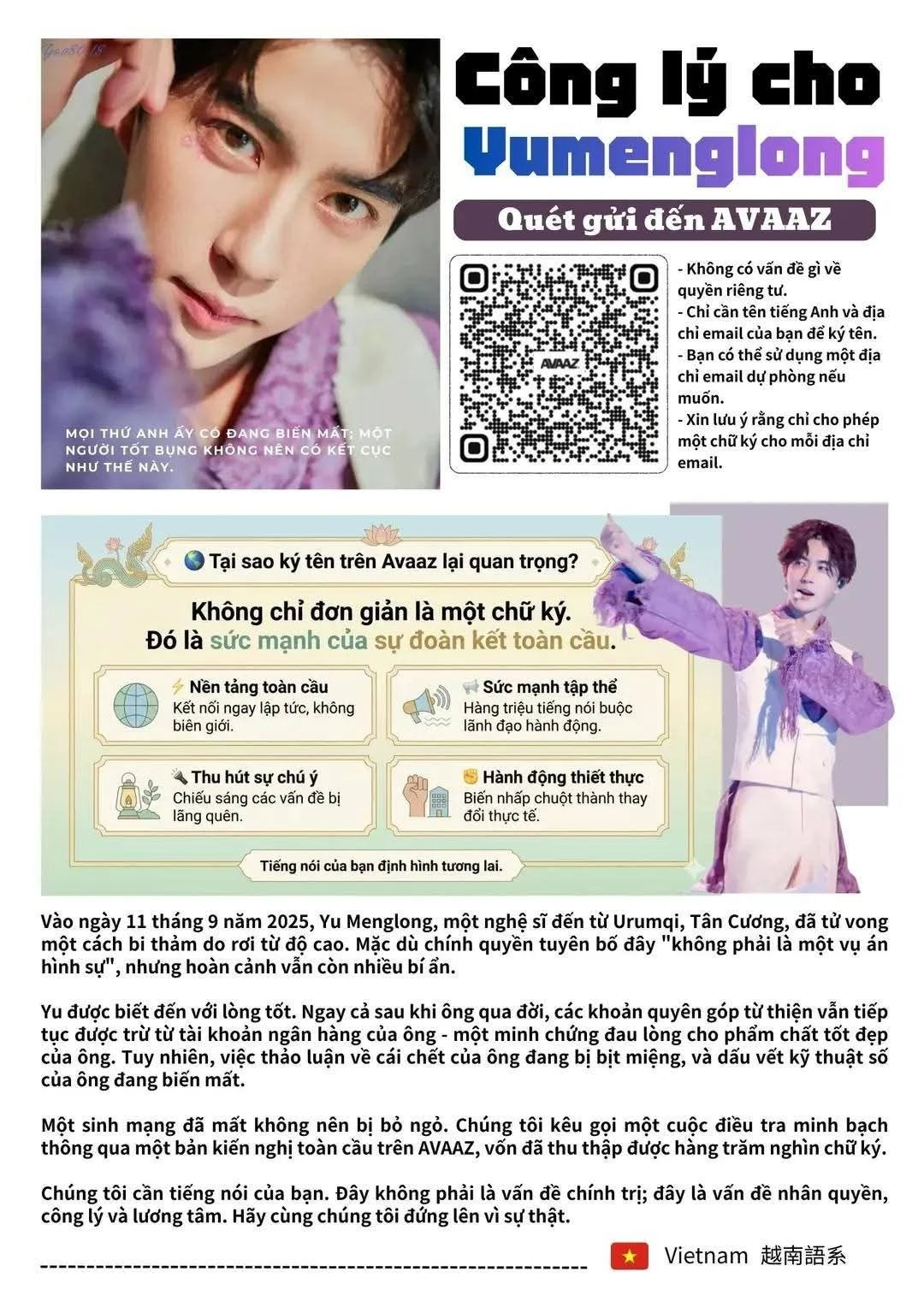 The campaign calling for clarification of the incident garnered over half a million signatures, and images of Vu Menglong appeared in many public spaces abroad with a message of wanting transparency. However, in this wave of emotions on Douyin, what people are talking about is no longer the question of right or wrong, but the memory of an artist who once brought warmth to people's hearts.