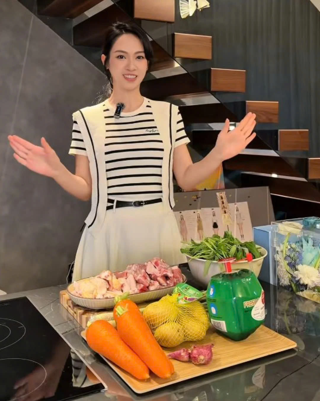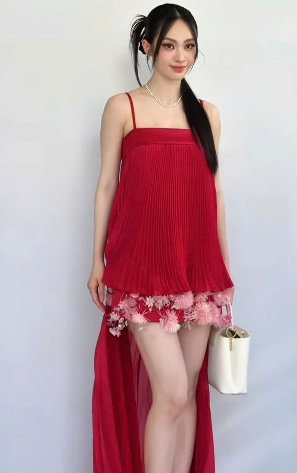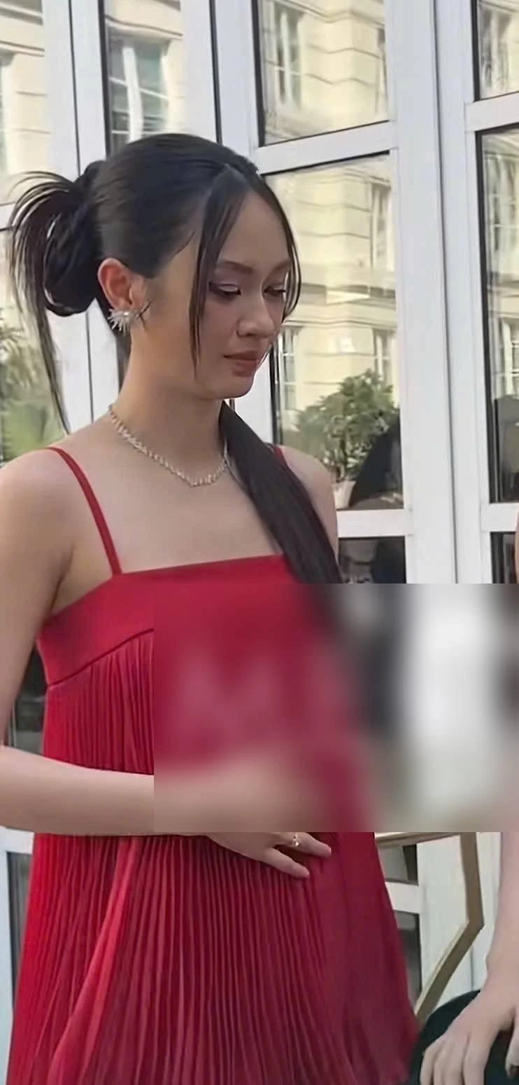 Specifically, the beauty Vu Thuy Quynh chose a red dress with a wide skirt, covering the second round. Not only that, many netizens also noticed that she often put her hands on her abdomen during the time of attending the program. These details quickly raised the suspicion that Vu Thuy Quynh was pregnant and had "good news" with her boyfriend, young master Duc Pham.