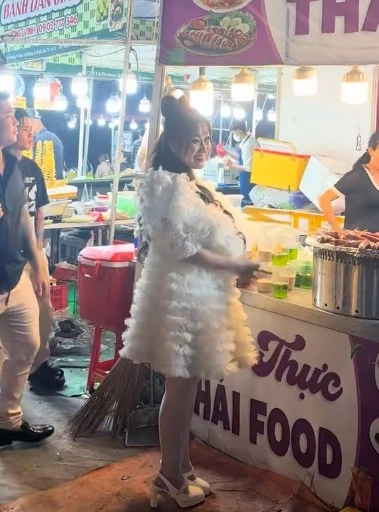 Pictures of Vu Tram Anh singing at a fair are circulating, the audience's attitude is touching