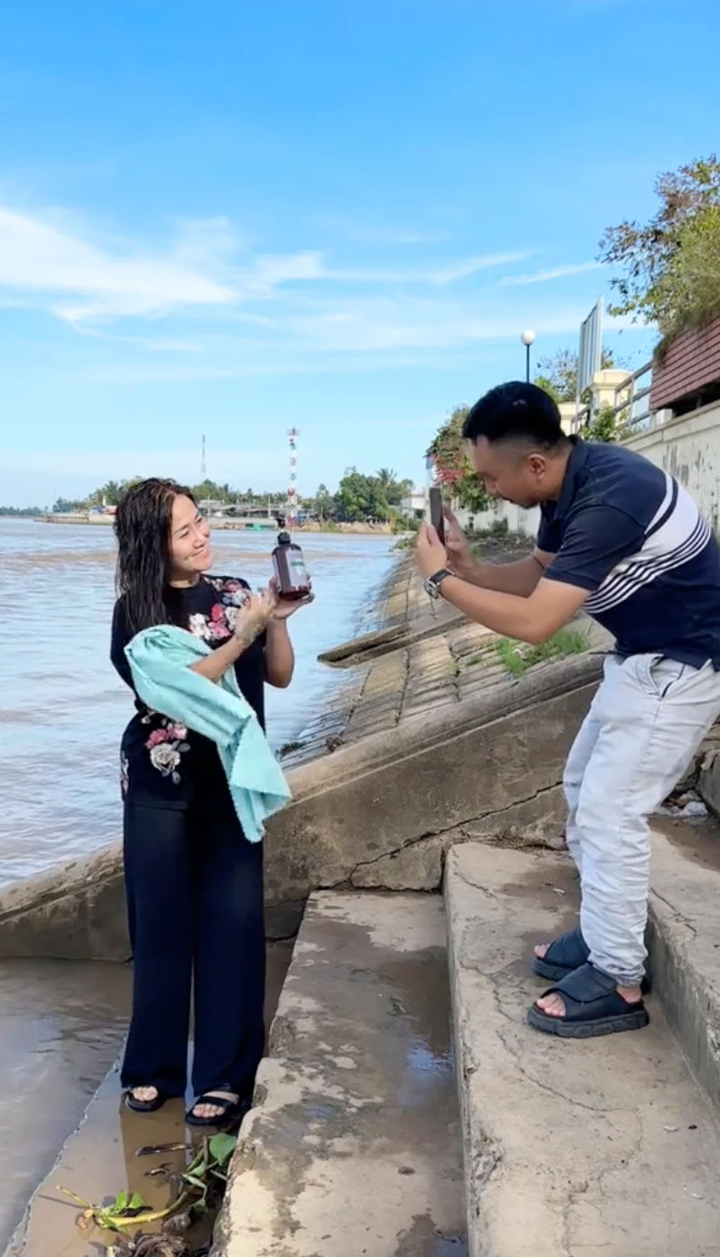 Anh cũng nhắc nhở đàn chị về việc kinh doanh có tâm: "Bán gì cũng phải có tâm trước, dùng tốt hẳn bán, không phải cái nào hoa hồng cao là cũng bán. Nay quay chai dầu gội, nhưng nhà chị chỗ bé xíu, lộn xộn quá nên mình lôi ra sông gội luôn cho nó thiên nhiên."